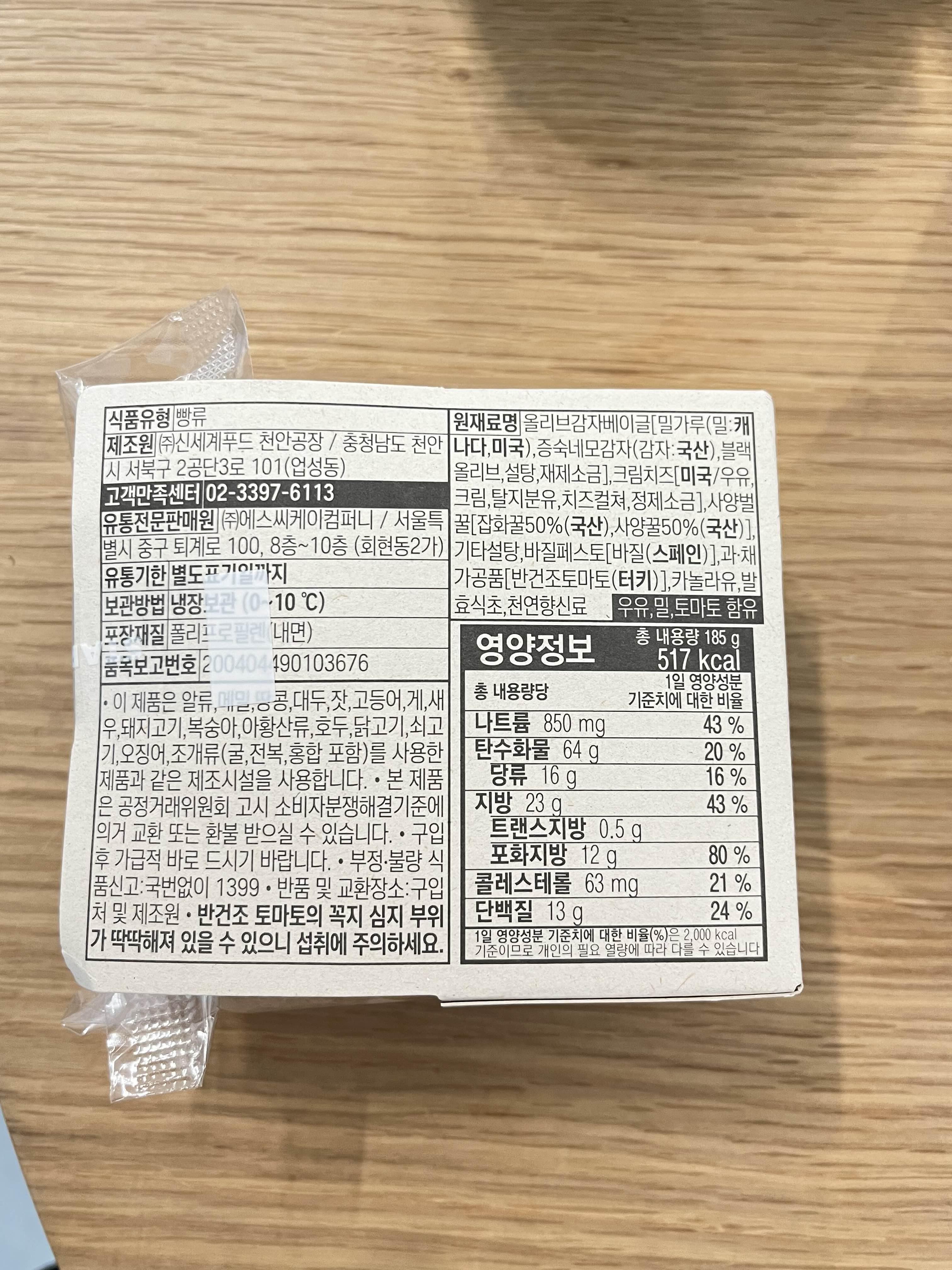 바질 토마토 크림치즈 베이글 영양성분, 칼로리