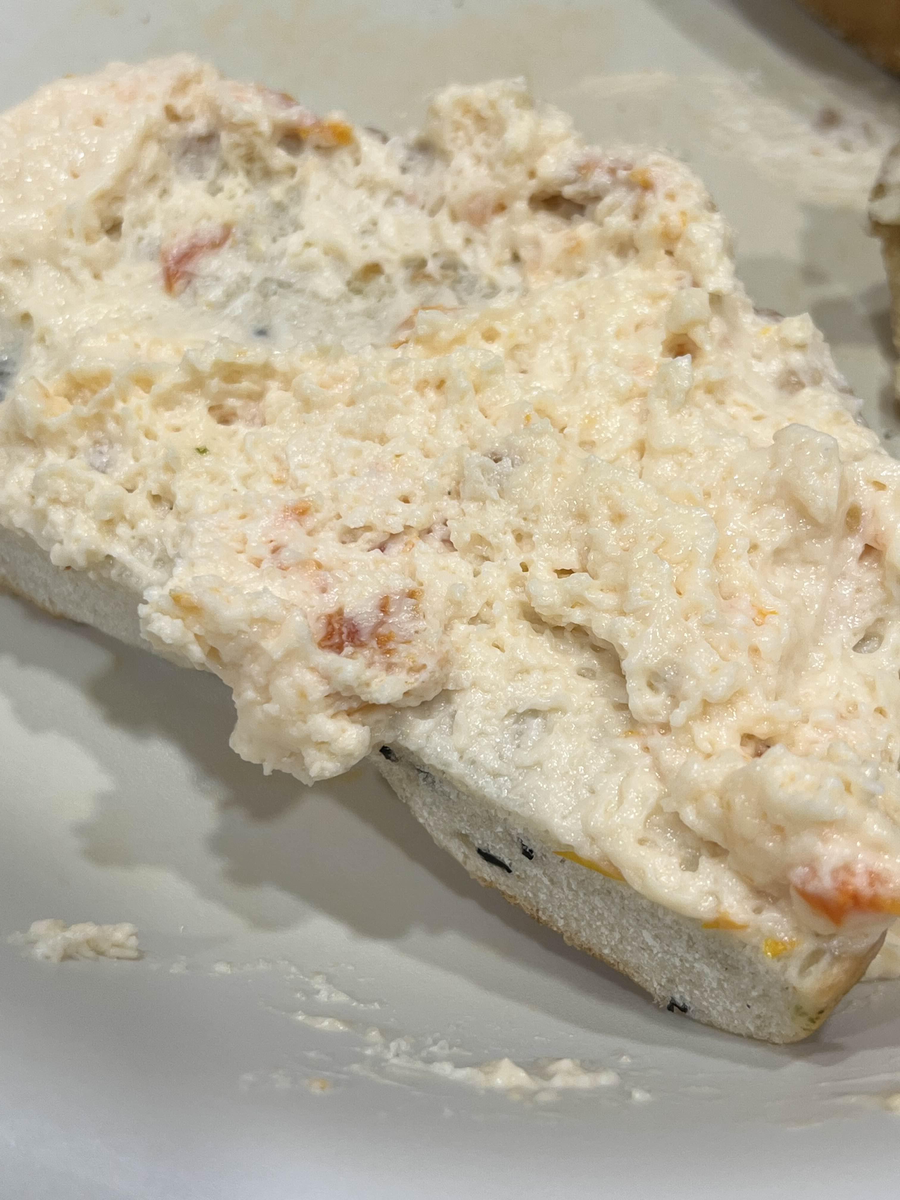 샌드위치 스타일로 바질, 썬드라이 토마토, 크림치즈가 들어가 있는데 생 토마토가 들어가는 것이 아니라 말린 토마토를 다져서 만든 크림치즈가 두껍게 샌드 되어 있고, 얇게 바질 페스토가 깔려있습니다.