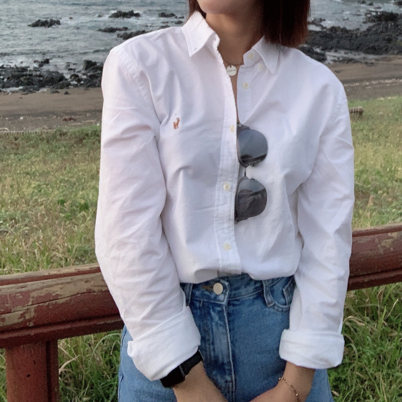 화이트 셔츠는 보이즈 제품 라지 사이즈로 오버사이즈로 착용하였고,